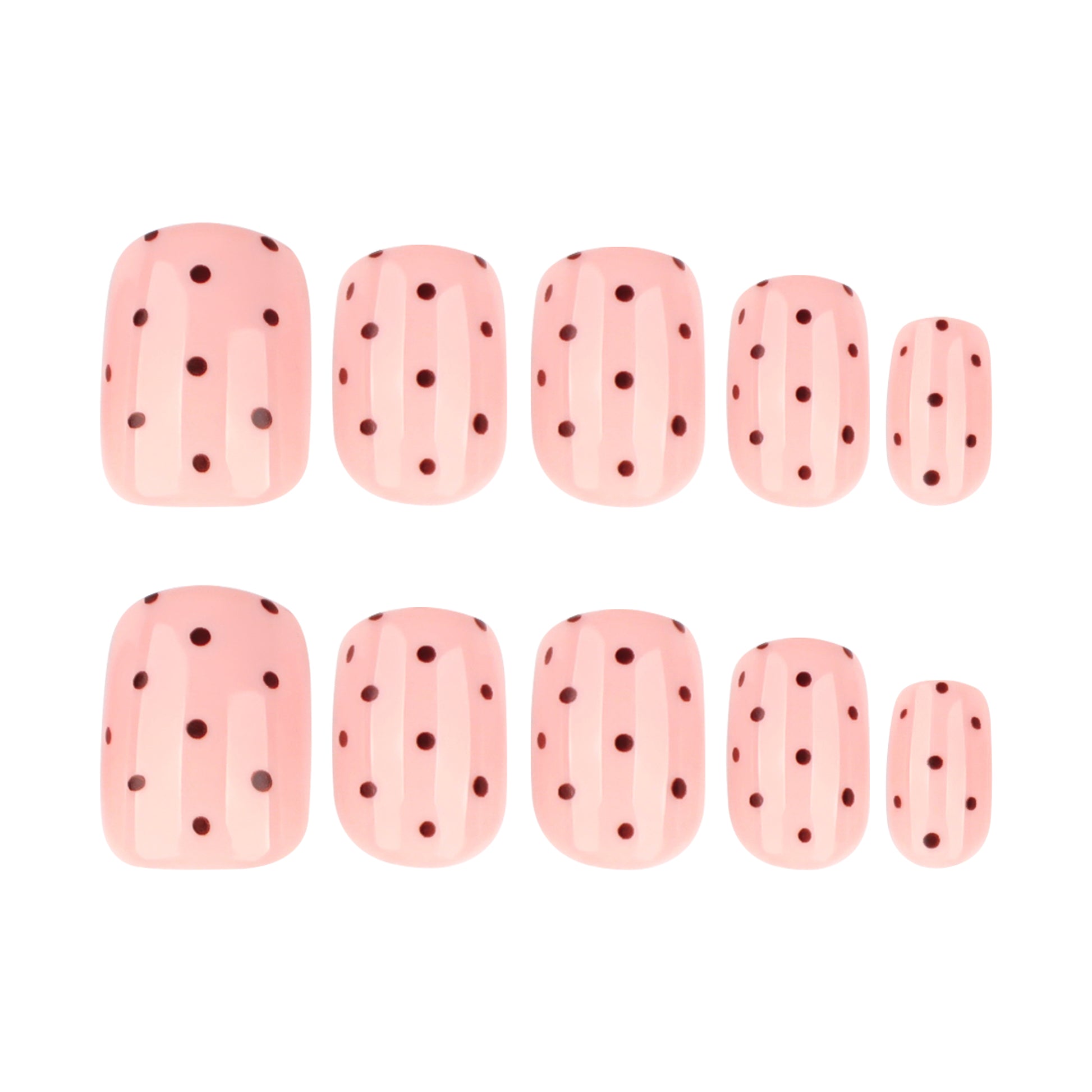 Cute Pink & Brown Polka Dot DesignThese short square press on nails feature a soft pink base with playful brown polka dots, a top retro & casual style in the US beauty market for daily wear.